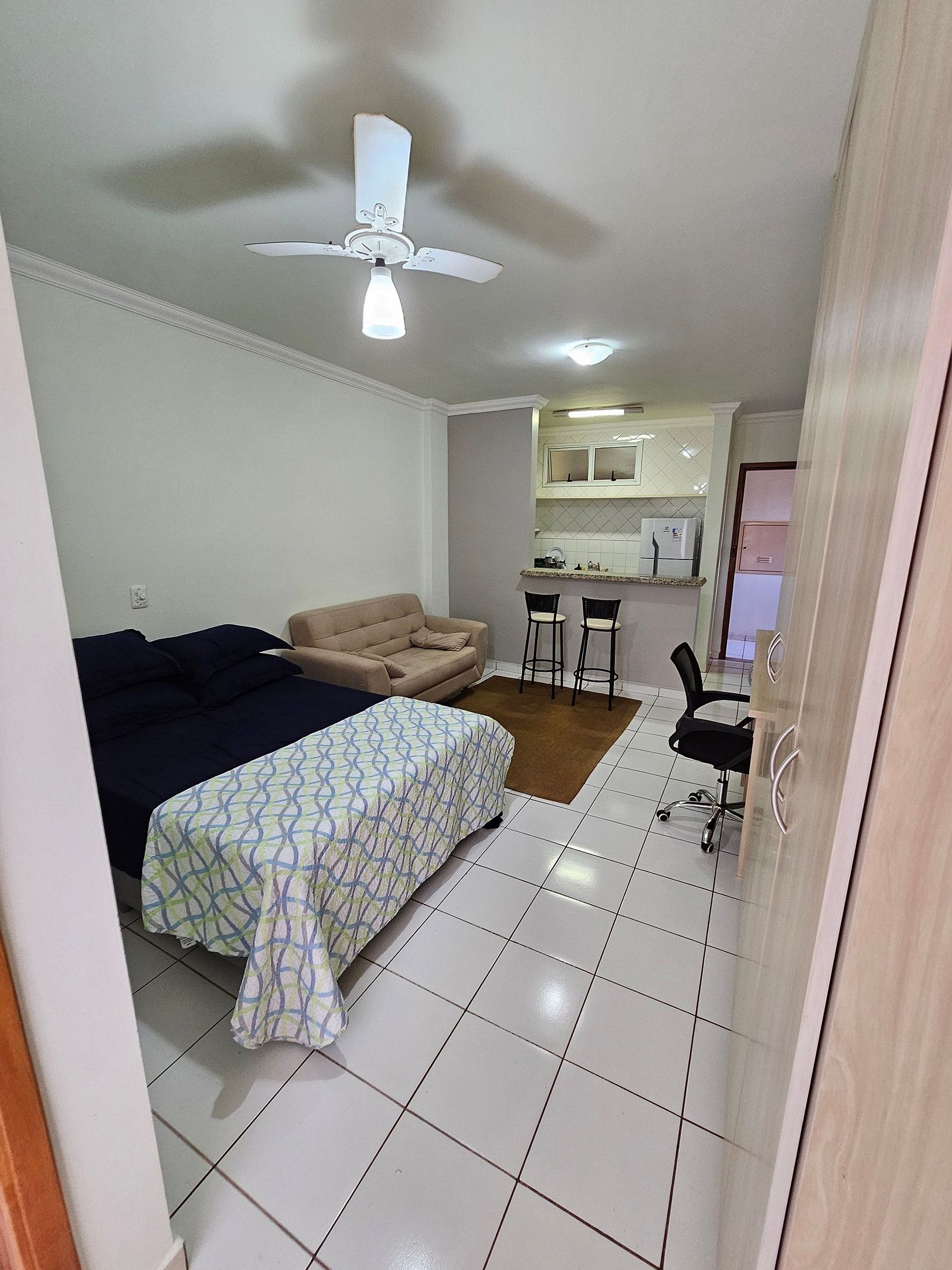 Studio conta com dormitório suíte, sala ampla, cozinha, sacada com vista, 01 vaga de garagem coberta Área de serviço externa com lavanderia de uso comum Localização privilegiada Próximo da UNAERP, bares, supermercados e farmácias Com centro comercial no edifício, contemplado por restaurantes. Mobilhado: Geladeira Inox, Fogão, utensílios de cozinha, Cama Casal, Painel de Televisão, Ar Condicionado, Televisão 32 Polegas Smart TV, Sofa e Decoração *AP Com Internet WIFI